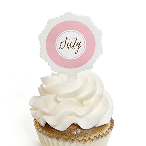 Chic 60th Birthday - Pink and Gold - Cupcake Picks with Stickers - Birthday Party Cupcake Toppers - 12 Count