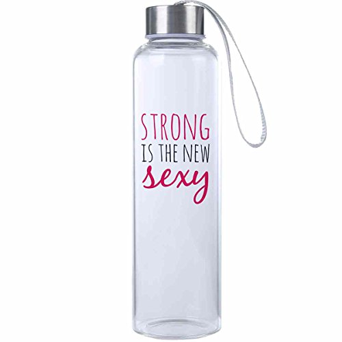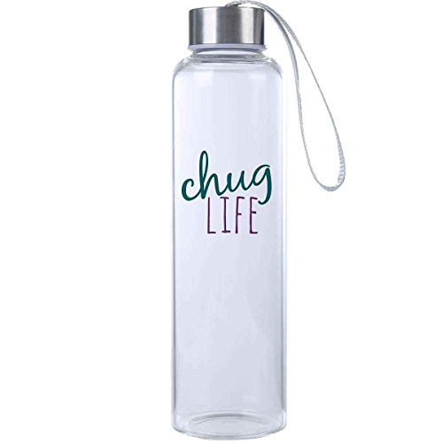 Thick High Quality Clear Glass Bottle Eco-friendly & reusable bottle Strong Fabric strap attached to lid - convenient carrying 20 oz. Printed + pressed in the USA Artwork placement/color may vary slightly from photosFeature