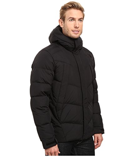 -. Binding : Apparel -. Brand : The North Face -. Color : Tnf Black -. Department : mens -. Feature : Three-piece hood with exterior down draft tube Covered, center front zip with hidden snap placket Covered, secure-zip quad pockets Velcro® adjustable cuff tabs Embroidered logo on chest and back -. ProductGroup : Apparel -. ProductTypeName : OUTERWEAR -. Title : The North Face Eldo Down Jacket Men's CoatTNF Black