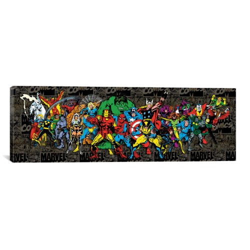 - Title : iCanvasART Marvel Comic Book Character Lineup Comic Logo Panoramic by Marvel Comics Canvas Art Print, 48 by 16-Inch