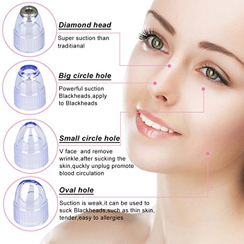 -. Feature : For acne, pimple skin treatment / Remove Carnation, deeply clean face / Treatment for dry skin / Treatment for sagging skin and wrinkles, Skin Rejuvenation / Package includes:1 x Beauty Machine, 1 x Charger Stand, 1 x USB Cable, 1 x User Manual1 x Diamond Head, 1 x Large Hole Head, 1 x Small Hole Brush Head 1 x Oval Hole Head, 2 Packs Sponge Filter