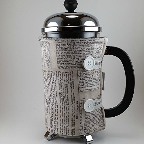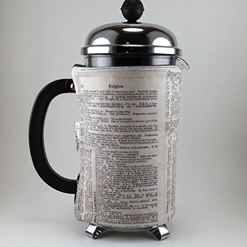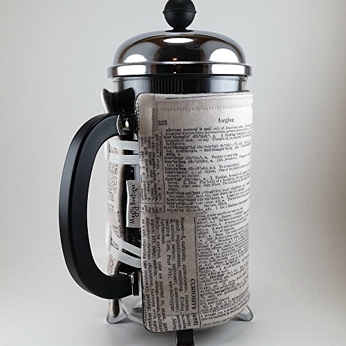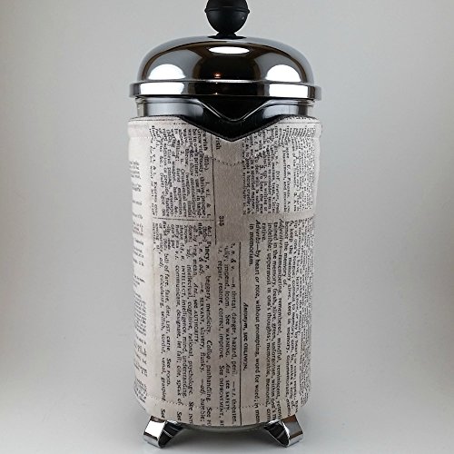 Product Description Love reading? Or maybe just learning the meaning of words? This dictionary themed cozy might just be the thing you are looking for! This is a handmade french press cozy, made to fit an 8 cup press. Made with 100% cotton print, insulated with Insul-Bright and lined with cozy cotton flannel fabric. Two 1/4 inch straps loop easily over two buttons for an easy placement. Top stitching in a coordinating color for a quality finish. FREE SHIPPING to US customers. Measures: 12 1/4 x 6 3/4 inches 31 1/2 x 17 cm Machine wash warm, tumble dry low or lay flat to dry. **Please note that each cut of material is unique and may not have the exact words and phrases in image.** 0