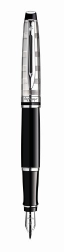 -. Title : Waterman Expert Deluxe Laque Black CT Fountain Pen, Chrome Trims, Steel Fine Nib.