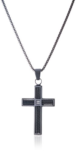 Men's Stainless Steel Cubic Zirconia Cross with Multi Color IP and 24" Box Chain Pendant Necklace