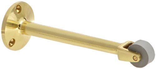 Rockwood 456L.3 Brass Straight Roller Stop, #8 X 3/4" OH SMS Fastener, 6-1/4" Projection, 2" Base Diameter, Polished Clear Coated Finish