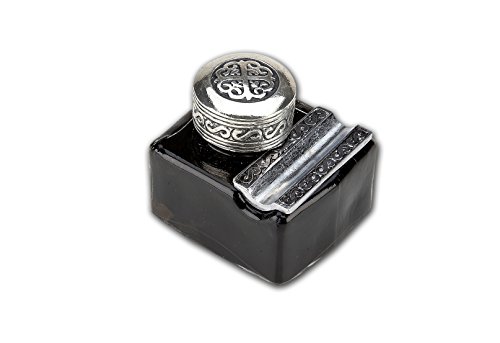 -. Feature : This elegant desktop accessory comes filled with a full 1.75 ozs. of Black Quality Ink! / Vintage-style Glass Inkwell with Decorated Metal screw-on Lid / Space for your pen to rest / Includes 1.75 ozs. of (water-based) Black Writing Ink to make writing a pure pleasure! / 2.5"deepx2"wideX2 1/8"high