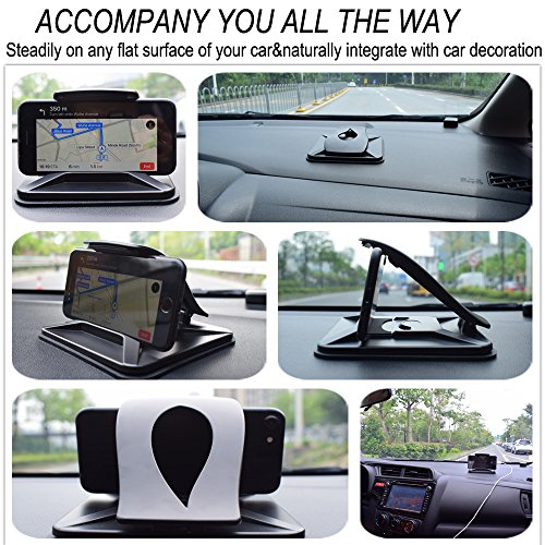 -. Feature : ✅Super Compatible Mounts: This car mount universal fit for most mobile phone from 3" to 7", like for iphone X/ 8/ 7/ 7plus/ 6/ 6S/ 6S plus, Samsung Galaxy Note 8 S8 plus, S7 Edge, LG K7 V20 , GPS device like Garmin, TomTom, Magellan etc. Also the Phone holder work good for different brands of cars& vehicles / ✅STABILITY: Triple reinforcement on dashboard, large silica gel base, plus a circle of adhesive silicone film and a suction cup, make the phone holder stand firmly on your car. / ✅SECURITY: Car holder made of high quality sP.R.Ing, as well as two ends of clamping go with non-skip silicone, make it hold the phone securely and won't slide or fly out even taking a sharp turn, sudden stop or accelerate. / ✅MOBILITY: Sticky silicone material is not permanent attachment to the dash. portable It can be taken off from the dash easily, and the silicone bottom become sticky as new after flush. / ✅Perfect Driving View: Thanks to its mobility, you can put the cell phone car holder at best position for your view. Two different angels provide more choices for you to find non light reflect and clear screen view.
