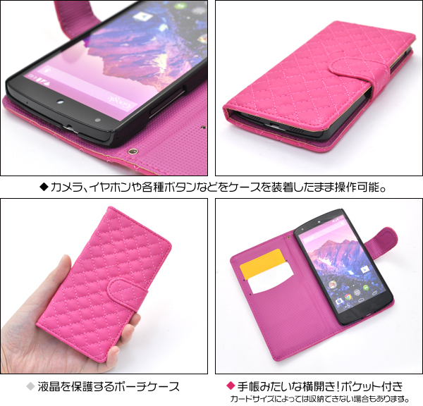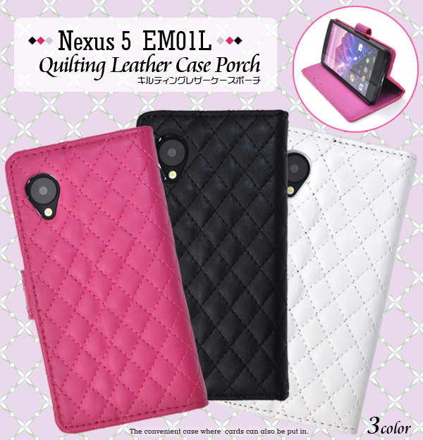 高級感溢れるNexus 5 EM01L用キルティングレザーケースポーチ