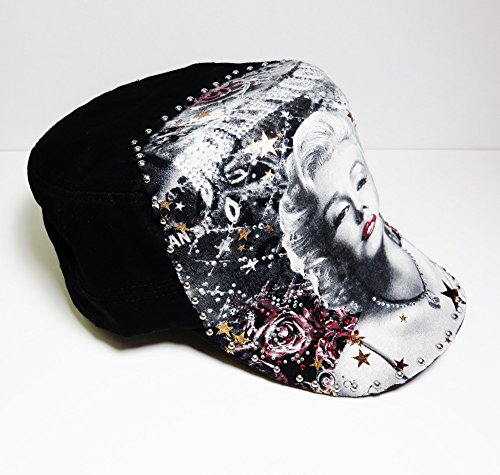 -. Title : Bling Marilyn Monroe Black Cadet Cap Hat Novelty Military