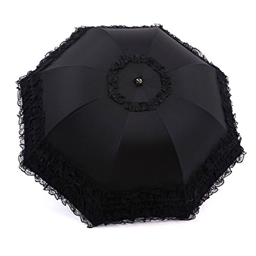 -. Feature : Beautiful three-dimensional lace umbrella / Inner sunscreen fabric production, double super sunscreen / Made from sturdy steel and quality waterproof cloth, the umbrella is highly durable and capable of with standing strong winds and rains / Alloy Tiesan bone, will not rust, not deformed / When folded, the umbrella is small and fits easily in your bag while you are on the go