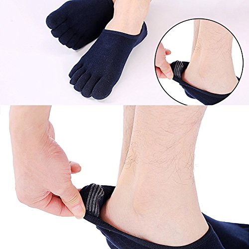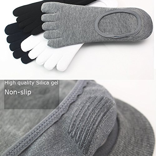 -. Binding : Apparel -. Brand : Shinestore -. Color : Black/Navy Blue/Grey/White -. Department : mens -. EAN : 0657228088671 -. Feature : Made of Cotton: Comfortable and soft for your toes and feet.Easy to wash - machine wash or hand wash in cold water. / Five finger toe socks: NO Show Crew Ankle Socks suit for both Mens and Women, let you stay comfortable & dry and allows your toes to align and splay naturally.Mens toe socks compatible with traditional athletic,casual or dress footwear as well as athletic running toe shoes. / Thin Designed & One Size: Please kindly refer to US Men's shoe size 6-10.Women's shoe size 7-11.Excellent stretch,better fit. / Toe socks with a No-show design ensuring the socks do not show when you are wearing running shoes, sneakers or dress shoes .A Lower-cut, No-Show design that sits below ankle bones ensuring the socks are invisible whether you are wearing boat shoes or loafers. / NON SLIP : design with an extra Anti-slip, silicone inner lining at the heel of the sock to prevent slipping. Fast shipping,shipping form US, Fulfilled by Amazon(FBA) -. IsAdultProduct : 0 -. NumberOfItems : 5 -. ProductGroup : Apparel -. ProductTypeName : SOCKSHOSIERY -. Size : 6-10 -. Title : Shinestore Toe Socks NO Show Cotton Five Fingers Crew Ankle Socks for Men Women 5 Pack -. UPC : 657228088671