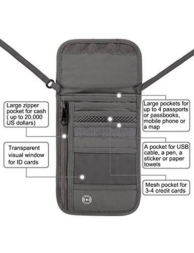 Anti-theft Neck Wallet is made from high quality waterproof nylon, offer a better grip on the clutch. Well organized your carry-on essentials, such as credit cards, identify cards, coupons, tickets, key, money, coins, cash and etc. Keep them all in the wallet and protect them well anywhere you go. Great for Families needing a passport case for multiple passports. Keep them all in the wallet and protect them well anywhere you go. Durable and lightweight, you can hold it or put it into the wallets to carry with you.