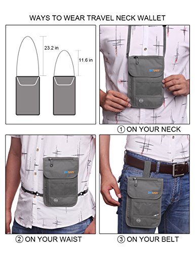 IDEAL FOR TRAVEL -- Light, comfortable, adjustable, breathable passport holder document holder designed to offer safe and secure place to store credit cards, documentation, passports, ID cards and all your valuables.