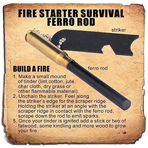 Start a fire anywhere in the snow, rain or wind with this unique ferro rod. Perfect for survival kits, hiking, preppers, bug out kits, backpacking or camping.