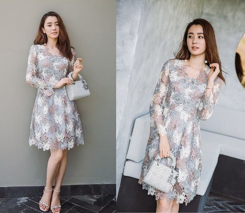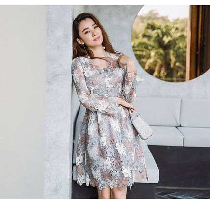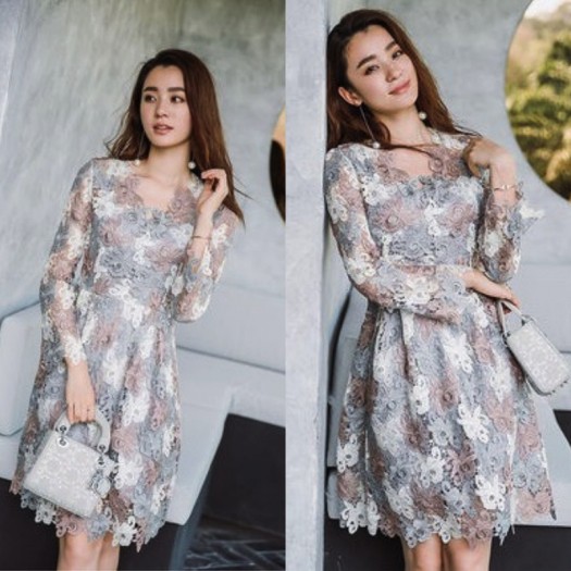 優しい色合いの花柄総レースワンピース。