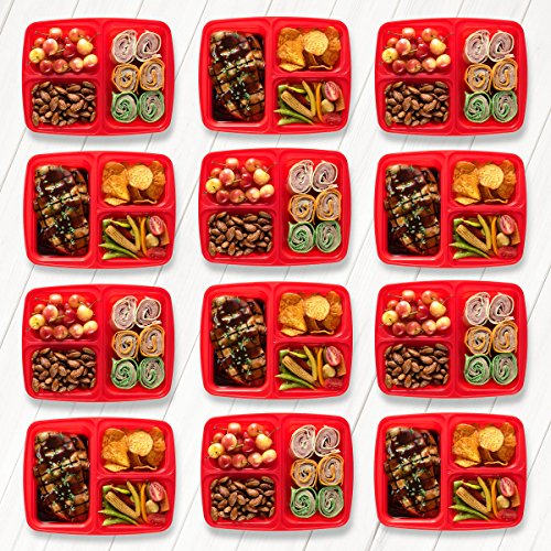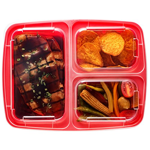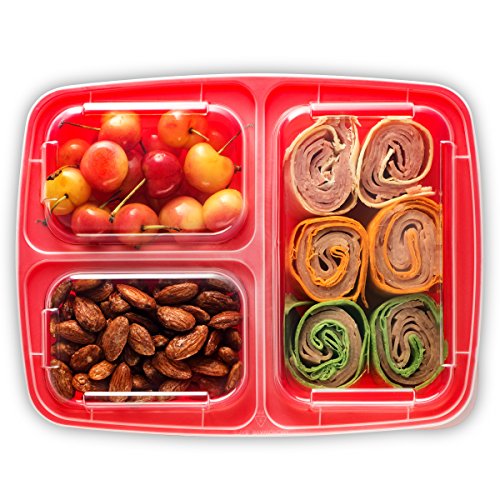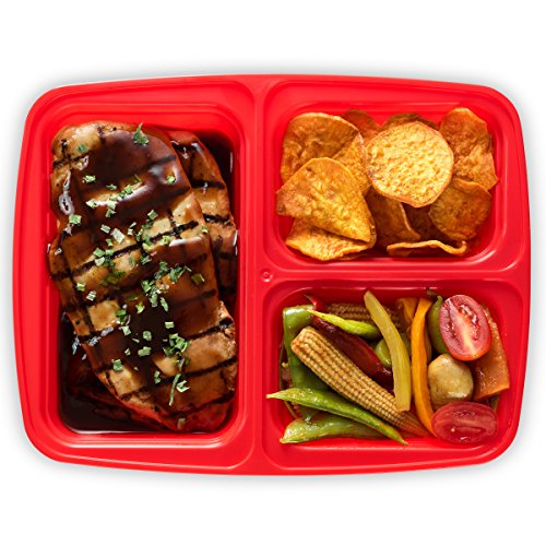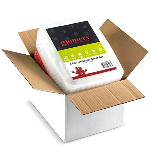 GLOMERY COMPLETE MEAL IN ONE BOX + PORTION CONTROL: This 14-Pack set of Bento Boxes features 3 different compartments so you can freeze or take with you a complete meal just in one container. Use them for your main course, salad and dessert and enjoy your meal everywhere, hassle free. Each meal prep container can store a total of 32oz (18-8-8 oz) which are the perfectly controlled portions to stay full, yet fit and healthy!