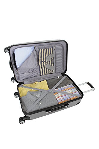 Studio : SwissGear Luggage Code_Domestic Code Publisher : SwissGear Luggage Code_Domestic Code Binding : Apparel Product Description Lightweight ABS hard side luggage, split case design with two large packing compartments, two zipper pockets, shoe pockets, and adjustable compression straps. 8 wheel spinner system. Multi-stage soft grip telescoping handle. 1.5" expandability for additional packing space. Reinforced lightweight carry handles. 5 year warranty. 0