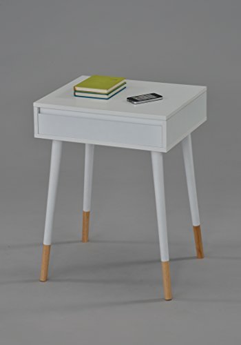 ()/Kids' Furniture Room Decor/Room Decor/DIRECT FROM USA/White Finish Nightstand Side End Table with Drawer and Natural Color Legs - Mid-Century Style