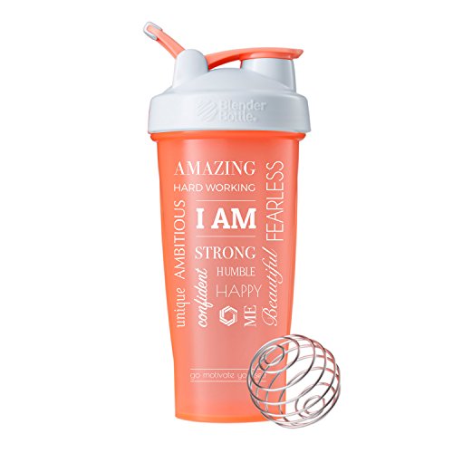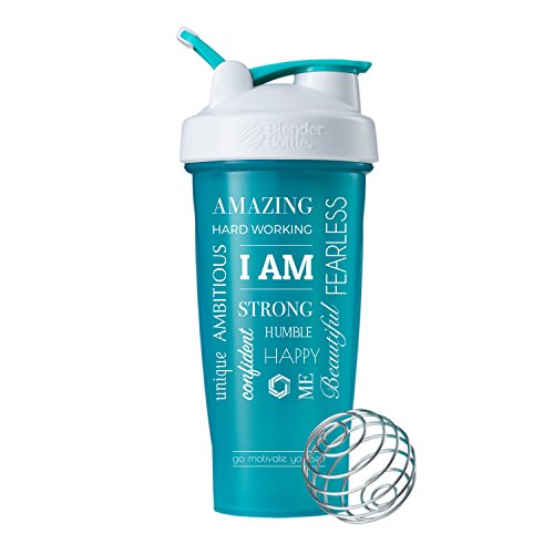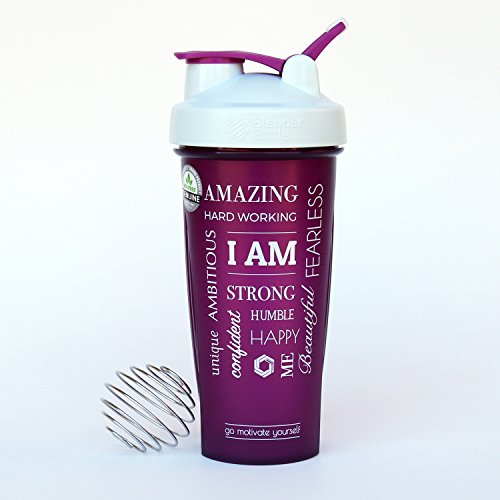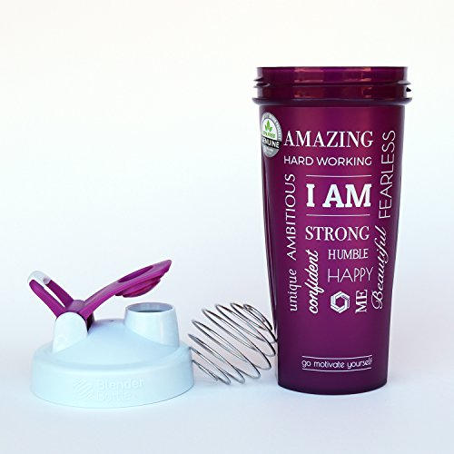 QUOTE: "I AM - Amazing, Fearless, Strong, Humble, Happy, Ambitious, Beautiful, Me, Confident, Hard Working, Unique" - Make sure you check out our other Motivational Blender Bottles with other quotes and color combinations. Also check out our promotions for the best deals