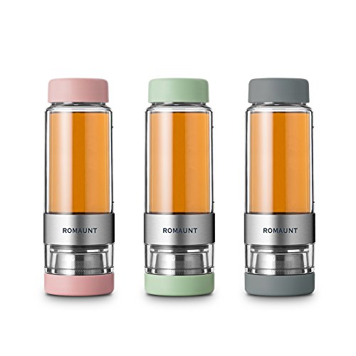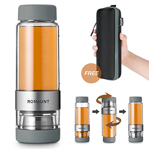 Tea Infuser Bottle Tumbler Travel Mug ROMAUNT Twist Valve System Design Control Tea Concentration 14oz / 390 Ml Double Wall Tritan Bpa Free Body Compatible With Coffee Bag Grey Color