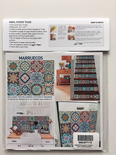 MARRUECOS Decorative Tile Stickers Set 12 units 6x6 inches. Peel & Stick Vinyl Tiles. Home Decor. Furniture Decor. Backsplash.