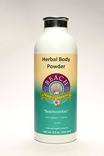 Talc Free Organic Body Powder, Beachcomber Scent (Calendula, Chamomile, Lemongrass, Vetiver Essential Oils). Made and sold by Beach Organics. 4.2 oz.