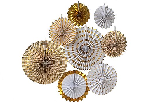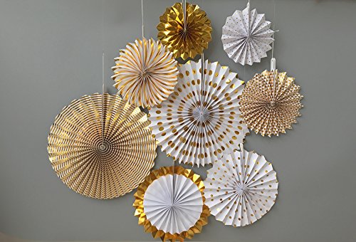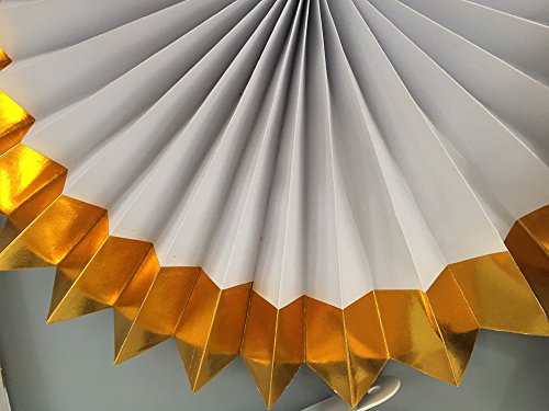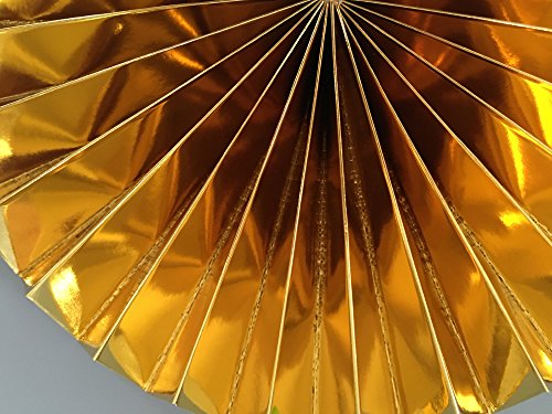 - ★ Beautiful glitter gold color paper party fans for haning decoration. Specialty finish with Gold Foil Accents and Gold Glitter.