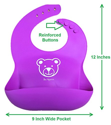 -. Binding : Apparel -. Brand : Happy Babee -. Color : Blue & Green, Pink & Purple -. Department : unisex-baby -. Feature : ✔️SAFETY, HEALTH, QUALITY, MONEY SAVED - FDA Approved and BPA Free, providing the most protection possible to your love ones. The quality of our product ensures no more buying any packages of bibs again! Top Rack Dishwasher Safe as well! / ✔️SAVE YOUR TIME AND ENERGY - Thanks to the Food-Grade Silicon, washing your bibs is simple. Just use Soapy Water to wash off the food. Although Dishwasher Safe (Top Rack), No need of a dishwasher! / ✔️PERFECT GIFT WITH 4 CUTE ANIMAL P.R.INTS - Each bib comes with a different animal P.R.Int your child will love. (Whale, Dinosaur, Bunny Rabbit, Bear). Happy Babee offers a Beautiful Packaging, Gift-Wrap and Customizable Note so you can gift it to a friend with children without having to open the box! / ✔️FRUSTRATION FREE & ADJUSTABLE - FOLDABLE - Our bibs are easy to put on your child, no matter the size, since they are adjustable. The Large Pocket Stays Open to really catch the falling foods and keep clothes clean! The bib is large enough to cover the shoulders of the baby, so the food doesn't get anywhere on the clothes. / ✔️LIFETIME WARRANTY - Not Satisfied with your bibs? Happy Babee will buy back your bibs, No Questions Asked! -. IsAdultProduct : 0 -. NumberOfItems : 2 -. PackageQuantity : 2 -. ProductGroup : Apparel -. ProductTypeName : ACCESSORY -. Size : Small -. Title : Soft Waterproof Silicone Baby Bib Easy Wipe - BPA Free - 100% Food Grade Silicone - Comfortable Adjustable Collar - Foldable - 2 Pack Baby Bibs (Blue Green / Pink Purple) 4 Friendly Animal P.R.Ints