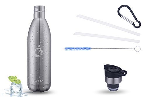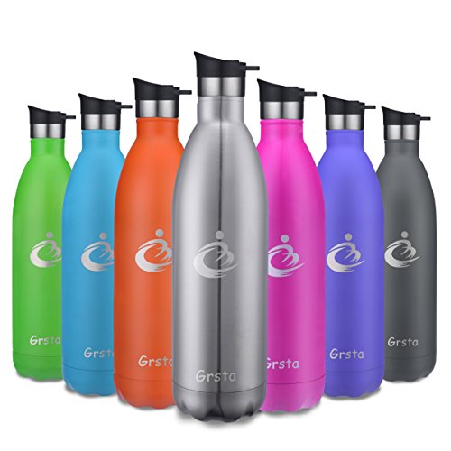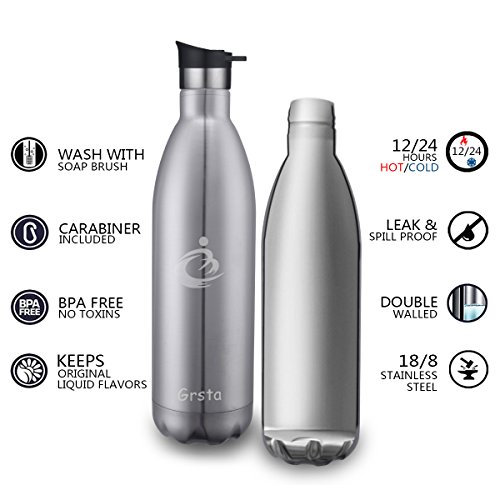 - HEALTHY MATERIAL: Grsta stainless steel water bottle made with food-grade eco-friendly material - 18/8 stainless steel, double-wall and vacuum insulated which is not harmful to your body and keep your drink hot up to 12 hours, and cold up to 24 hours, it will never rust or leave a bad metal taste in your mouth