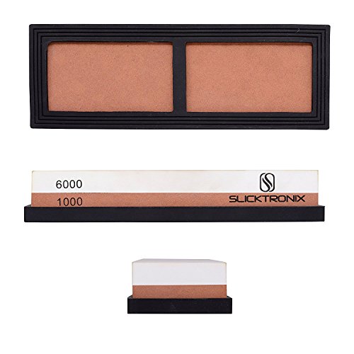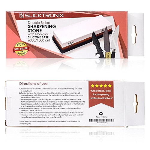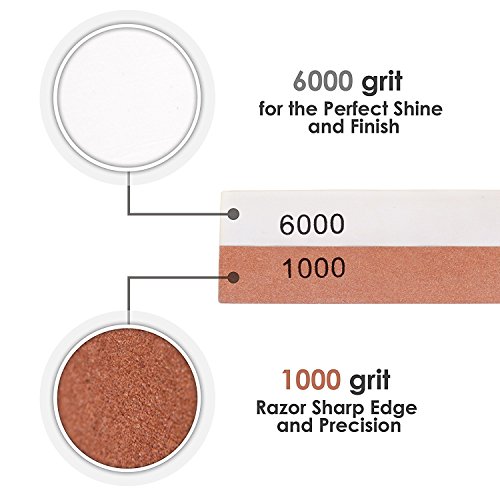 ✔2 LARGE WHETSTONE KNIFE SHARPENER 1, this stone is equipped with a #1000 grit side for rough sharpening and a #6000 grit side for fine finish sharpening and honing.