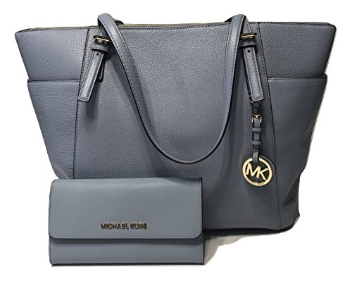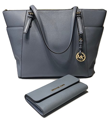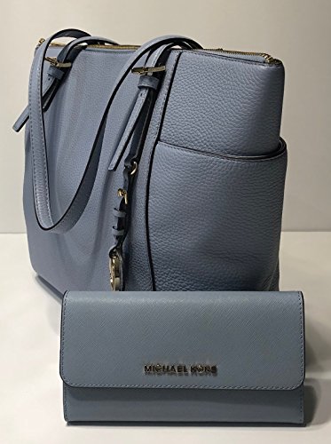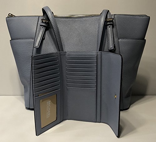 MICHAEL Michael Kors Large East West TZ Tote bundled with Michael Kors Jet Set Travel Large Trifold Wallet (Pale Blue)
