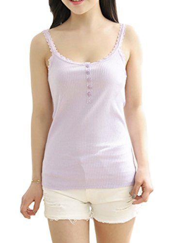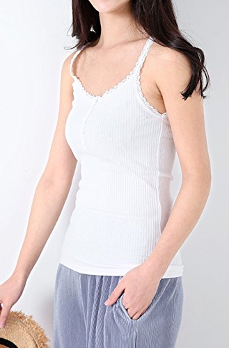 -. Feature : ボディに沿ったシルエットでキレイに着こなせるキャミソールです。肩紐、首回りがレースになった定番のキャミソールです。リブのラインがのっぺりしないアクセント付けとなり、すっきり感を生み出します。 / 軽くて肌触りがよく、程よい伸縮性のある生地なので動きやすくインナーとしてはもちろん、レイヤードにもご使用いただけます。。 / トップスとして一枚着てのお出かけはもちろん、ジャケットやカーディガン、シャツを羽織ってインナーとしてもお使いいただけますので1年を通じてオールシーズン様々なコーデで活躍すること間違いなし! / ※ボタンは飾りです。 ◆free:着丈約57cm