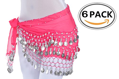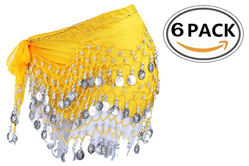 Wholesale Lots of 6 Chiffon Belly Dance Hip Scarf in variety colors