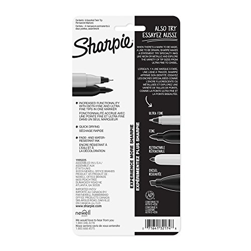 Sharpie Twin Tip Permanent Markers, Fine and Ultra Fine, Assorted Colors, 4 Count