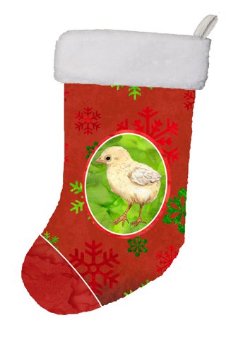 Caroline's Treasures Baby Chick Red Snowflakes Holiday Christmas Stocking, 11 x 18", Mulitcolor