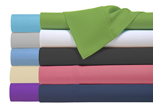 Dorm Room 200 Thread Count 3 Piece Cotton Rich Twin Extra Long XL Sheet Sets - Crisp Cool Percale Bed Sheets (Kiwi)