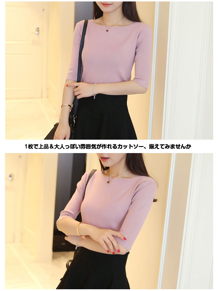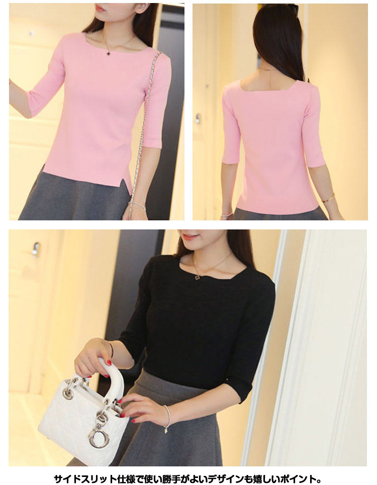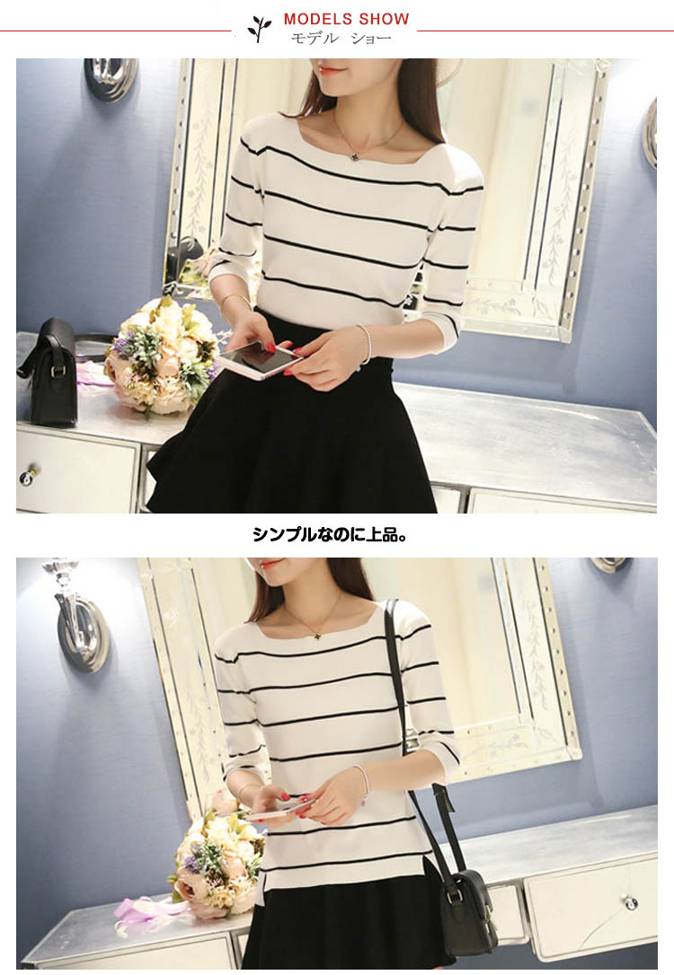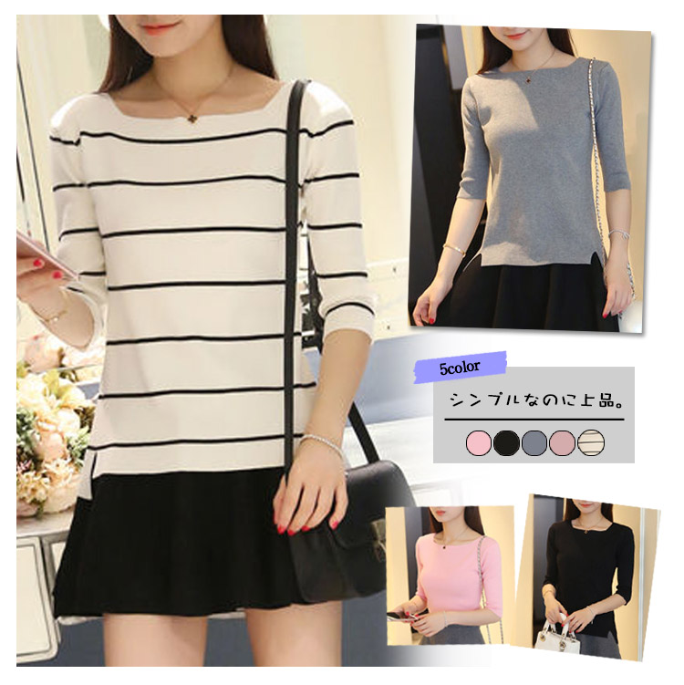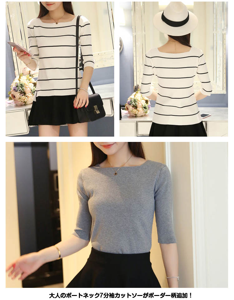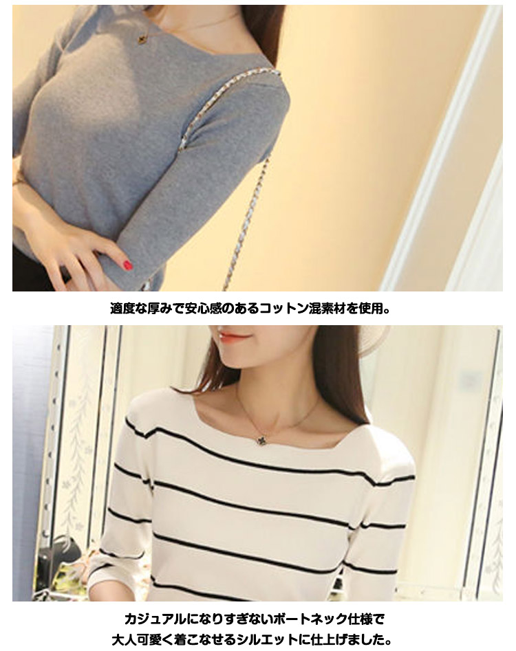 | シンプルなのに上品。大人のボートネック7分袖カットソーがボーダー柄追加!クルーネックよりも横幅を広くとったボートネックは女性らしさたっぷり♪顔周りがすっきり見えます。サイドスリット仕様で使い勝手がよいデザインも嬉しいポイント。1枚で上品&大人っぽい雰囲気が作れるカットソー、揃えてみませんか? | |