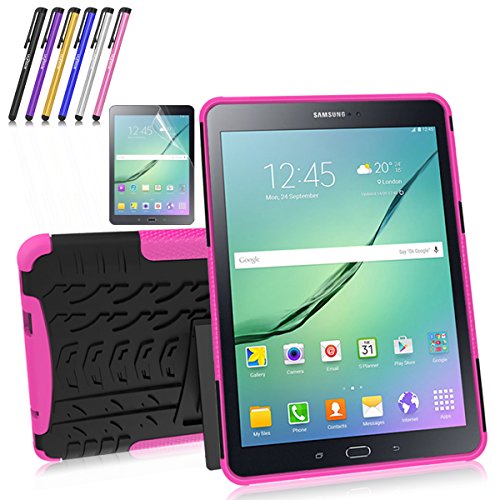 Windrew Heavy Duty rugged impact Hybrid Case with Build In Kickstand Protective Case For Samsung Galaxy Tab S2 9.7" SM-T810/T815/T817 9.7 Inch Tablet + free stylus touch pen (Pink)