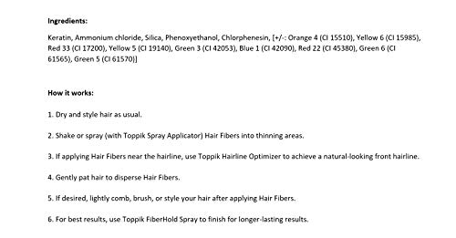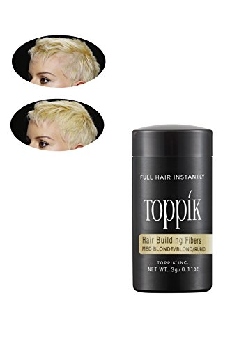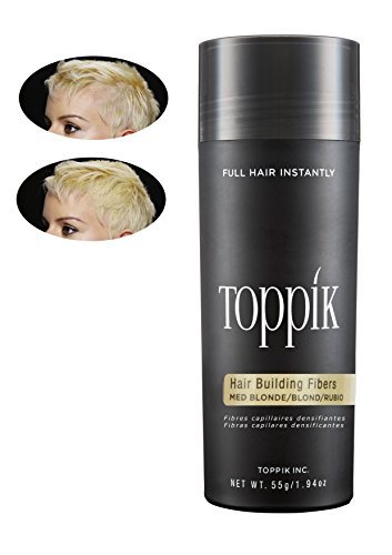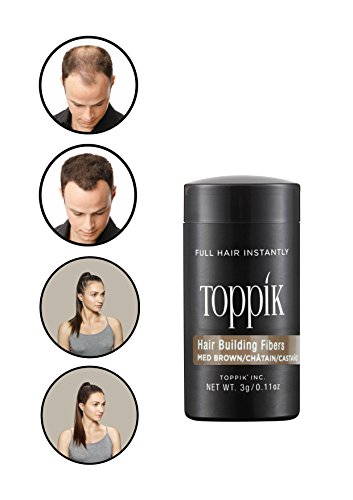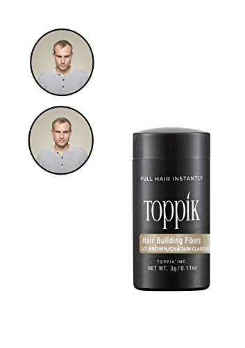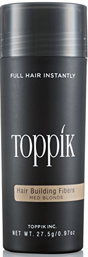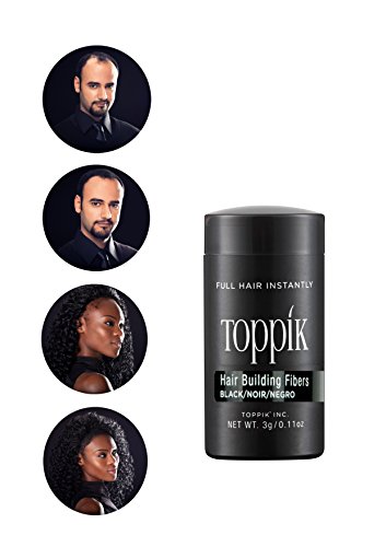 TOPPIK Hair Building Fibers instantly give you the look of thicker, fuller hair. Made of natural, colored Keratin protein that is naturally statically charged, TOPPIK Fibers intertwine with your existing hair for a completely natural look. TOPPIK resists wind, rain and perspiration but removes easily with shampoo.