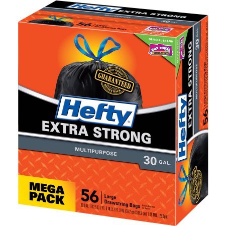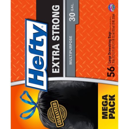 -. Title : Hefty Extra Strong Trash Large Drawstring Trash Bags, 30 gal, 56 count Black, E85656