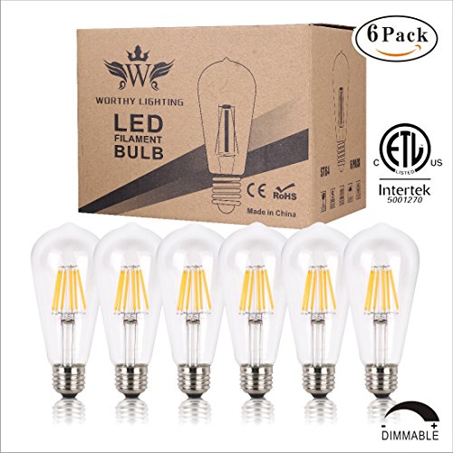 •★RECAPTURES THE GLORIOUS DAYS OF ANTIQUITY. Add a rustic, romantic flair to your home or office with Amazon’s best selling Worthy Lighting Edison Style LED Light Bulbs. The historical elongated teardrop shape and squirrel cage filament preserve the character and style of early 1900s Edison bulbs while giving an inviting glow and romantic atmosphere. Once you open the brown colored box received from Amazon you will get a pack of 6 light bulbs to add an elegant, historic touch to your home.