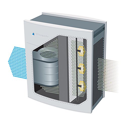 The Blueair 403 air purifier gets you the most bang for your buck by maximizing clean air delivery in mid-size rooms up to 365 square feet. Independently tested by the Association of Home Appliance Manufacturers (AHAM) for Clean Air Delivery Rate (CADR), the Blueair 403 has a rating of 240 cubic feet per minute for smoke, dust, and pollen with a superior 5 air changes an hour. Blueair 403 is whisper-silent on low and delivers designed white noise on higher speeds by using a double-suction radial fan to balance sound frequency making it more pleasing to the ear. Blueair’s patented HEPASilent technology uses both electrostatic and mechanical filtration to trap 99.97% of particles from the air down to 0.1 microns in size. The technology works by charging harmful particles as they pass through the encapsulated ion particle-charging chamber of the air purifier, successfully locking in particles large and small into the unique filter design. The Blueair 403 air purifier comes with a timer to alert you when your filter needs changing. The timer can be attached to the unit, refrigerator, or anywhere else. Simply open the door on the front of your Blueair 403 unit to change the filter. Weighing in at 33 lbs, the Blueair 403 features a handle, so you can move your air purifier around your home or office with ease. Intended for use with standard US outlet: 120VAC, 60HzFeature