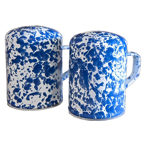 Enamelware Salt & Pepper Shakers - Blue Marble