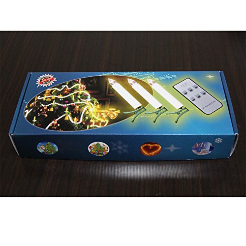 10Pcs LED Flameless Taper Candles,10Pcs Green Clips and 1Pc Remote Control,Candle Material: Plastic