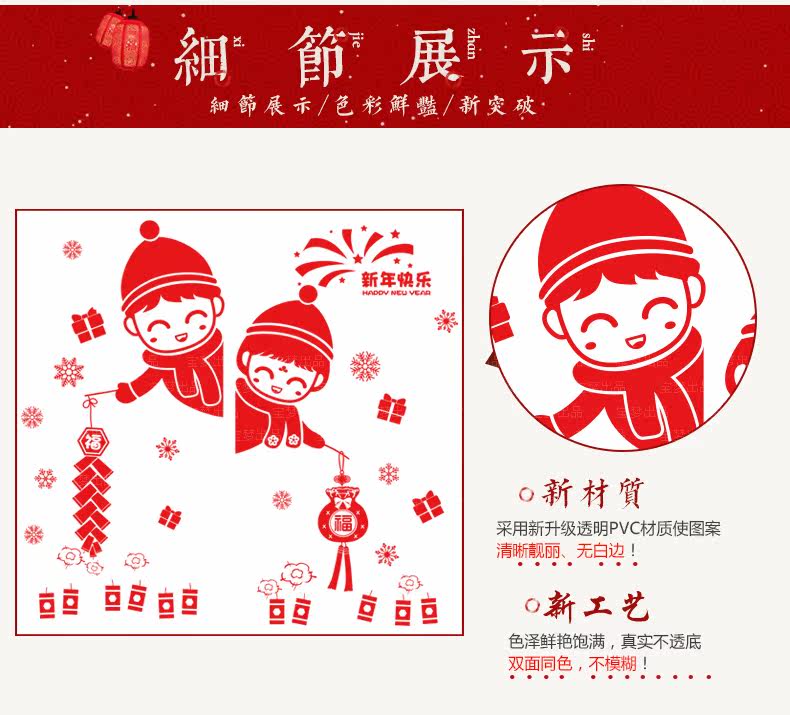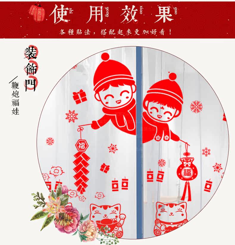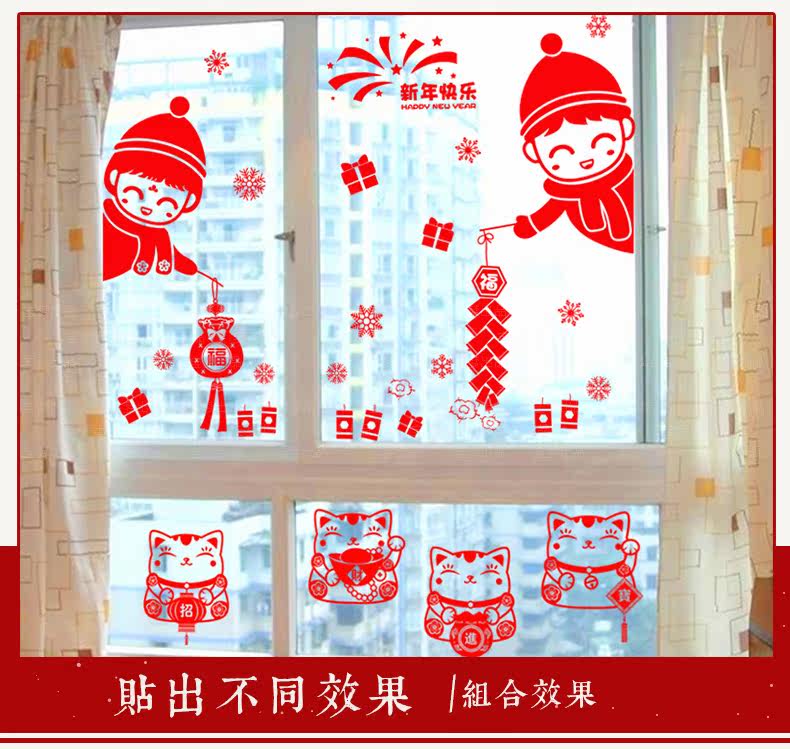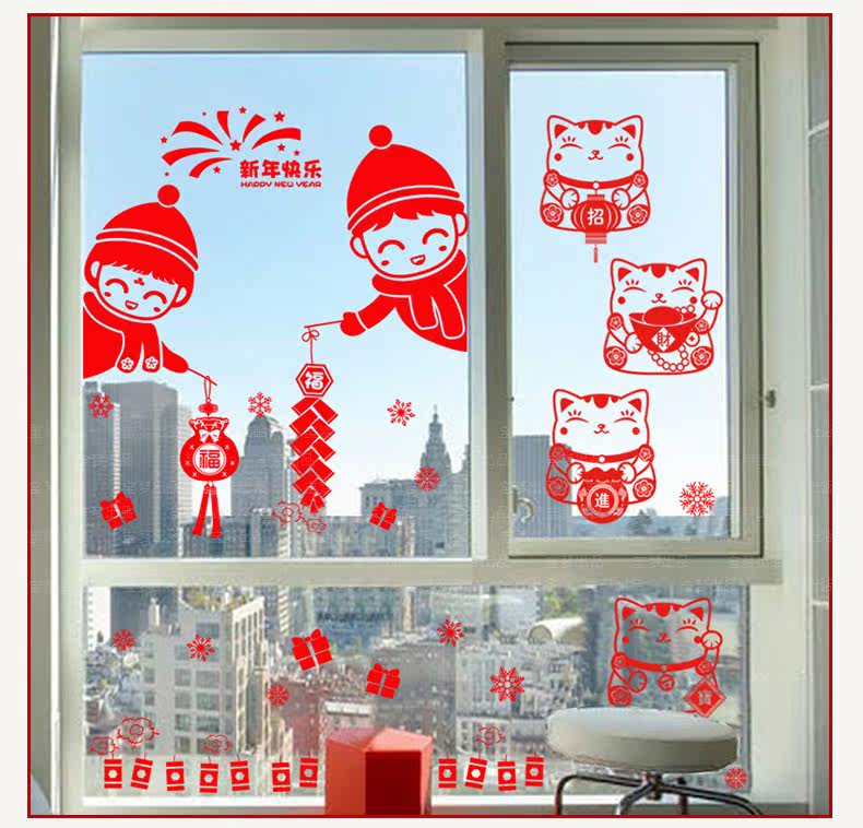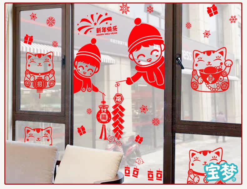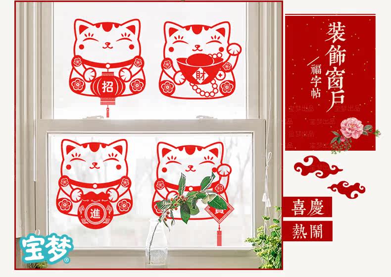 新年装饰品招财猫贴纸春节店铺商场橱窗户玻璃门福袋贴画