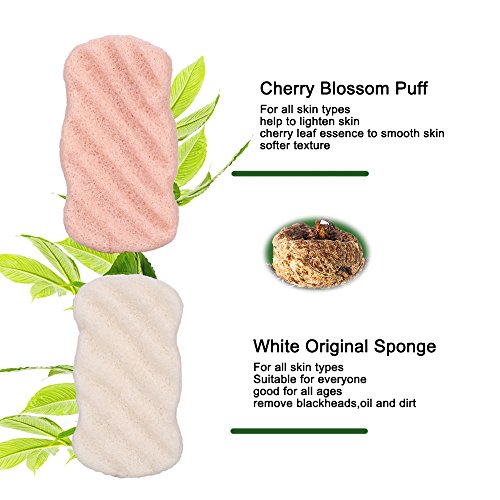 MORE FUNCTION ABOUT THE KONJAC SPONGE -- The Original White Konjac Sponge is 100% pure konjac.If you're with oily skin or someone who is prone to spots, blackheads and outbreaks.Cherry blossom pink puff for all skin types, softer texture it could help to tighten pores and renew damaged skin cells, let your skin smooth.