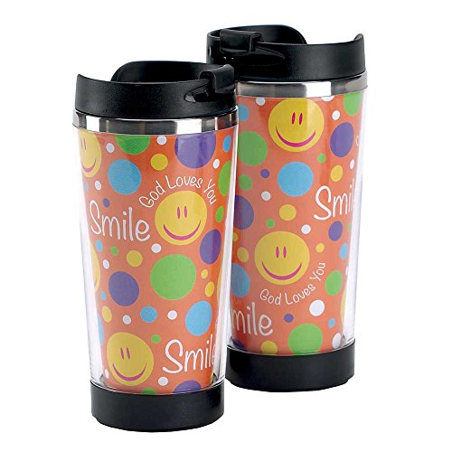 God Loves You Smile Face Polka Dot 9.5 Oz. Stainless Steel Travel Mug with Black Snap Lid