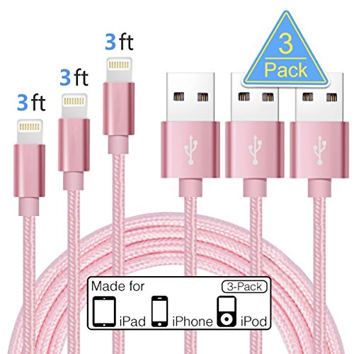 -. Title : Mushion EHI044 3.3' Durable Nylon Braided Cord Lightning to USB Cable Charger for Apple iPhone 7/7 Plus/6/6s/6Plus/6s Plus/5/5s/iPad/iPod/iPod Touch - Pink - 3 Piece