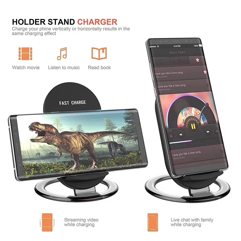Feature 1:2A Fast Charger Holder + Wireless Desktop Charger