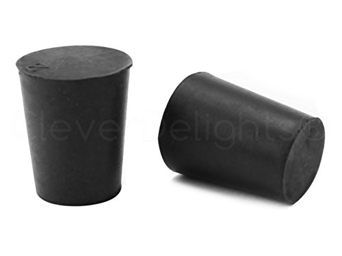 -. Brand : CleverDelights -. Color : Black -. EAN : 0693892352663 -. Feature : 25 pack -- Size: #2 -- Top diameter: 20mm -- Bottom diameter: 16mm -- Length: 25mm (Approximately 13/16" x 5/8" x 1") / Solid and resilient premium rubber stoppers -- Ideal for laboratory, household, and industrial use / Smooth and tapered sides designed for exceptional sealing and optimal fit with a wide range of openings / Other sizes ranging from #000 to #14 also available here on Amazon / CleverDelights brand -- Ships from a USA warehouse by a USA-owned company -. Label : CleverDelights -. Manufacturer : CleverDelights -. MPN : RS-Black-2-25 -. NumberOfItems : 25 -. PackageQuantity : 25 -. PartNumber : RS-Black-2-25 -. ProductGroup : BISS -. ProductTypeName : LAB_SUPPLY -. Publisher : CleverDelights -. Studio : CleverDelights -. Title : 25 Pack - CleverDelights Solid Rubber Stoppers - Size 2 - 20mm x 16mm - 25mm Long - Lab Scientific #2 -. UPC : 693892352663